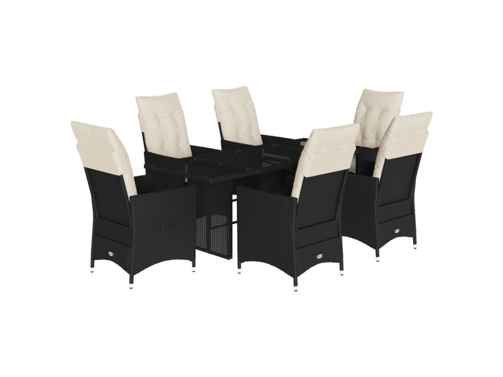 7dílný zahradní jídelní set s poduškami černý polyratan 3276700