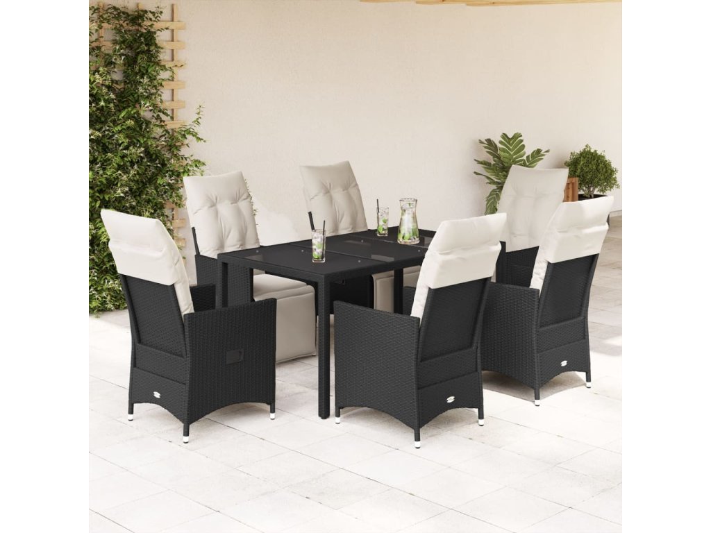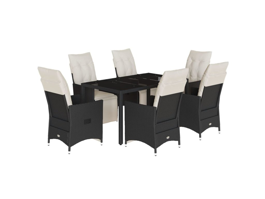 7dílný zahradní jídelní set s poduškami černý polyratan 3276866