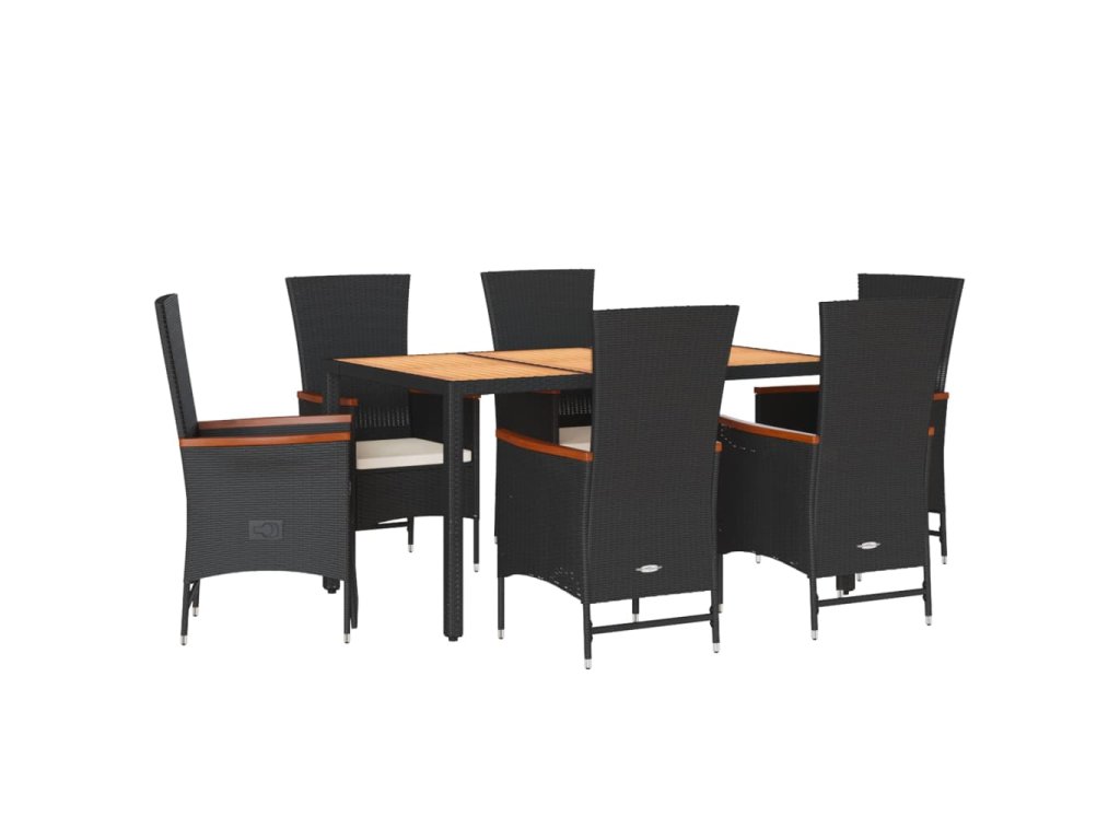 7dílný zahradní jídelní set s poduškami černý polyratan 3277514