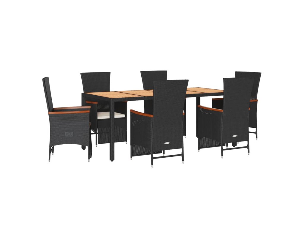 7dílný zahradní jídelní set s poduškami černý polyratan 3277517
