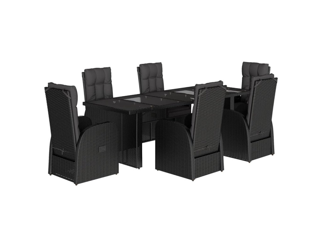 7dílný zahradní jídelní set s poduškami černý polyratan 3277640