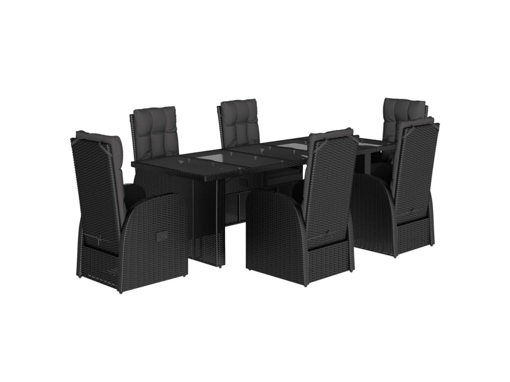 7dílný zahradní jídelní set s poduškami černý polyratan 3277656