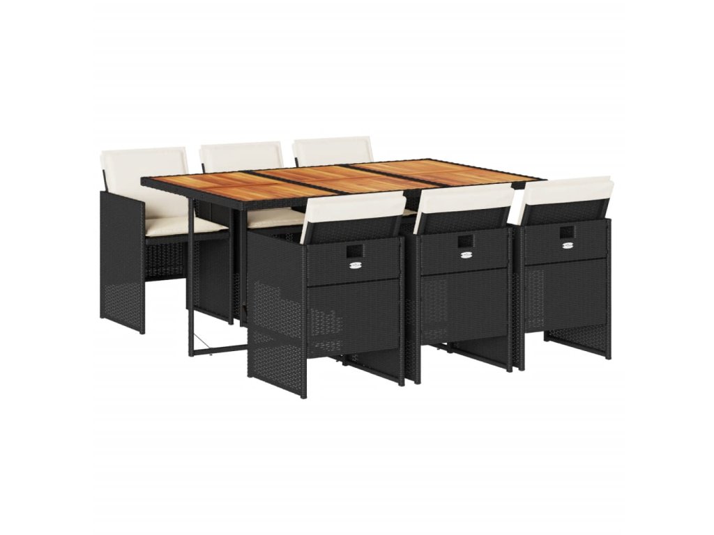 7dílný zahradní jídelní set s poduškami černý polyratan 3277682