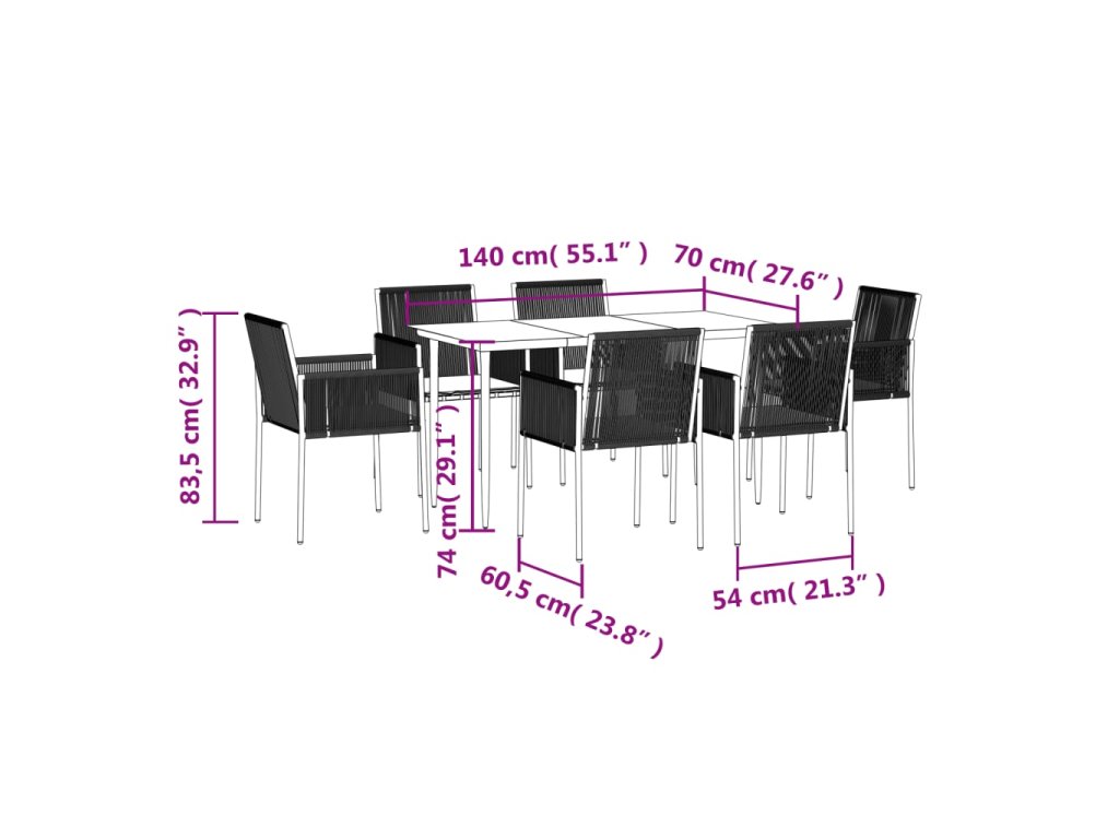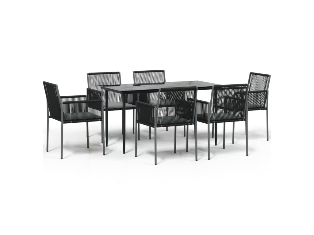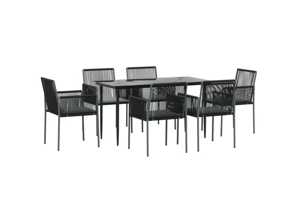 7dílný zahradní jídelní set s poduškami černý polyratan a ocel 3187068