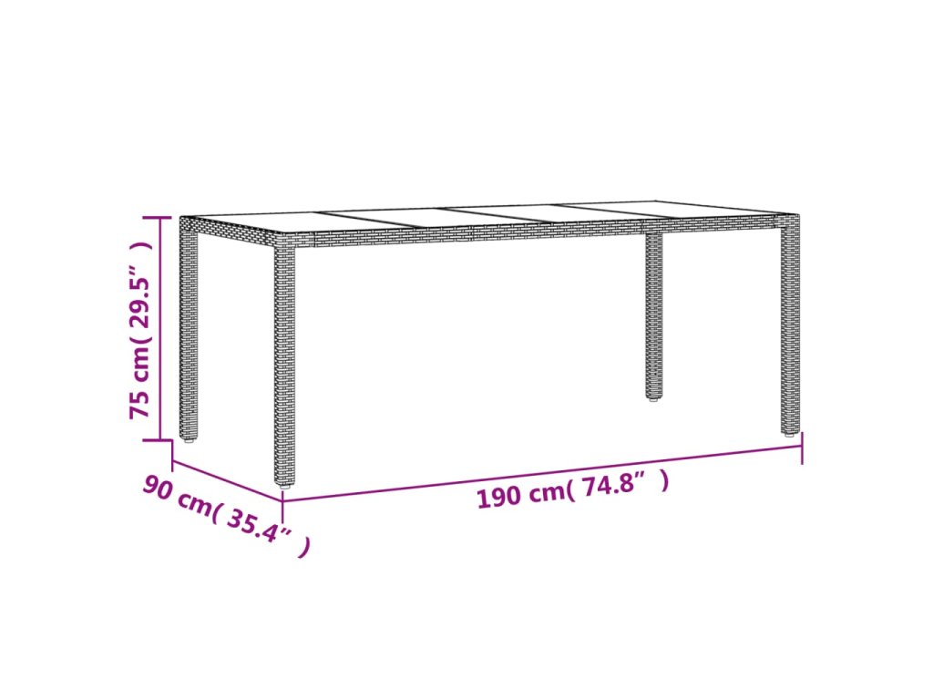 - Skleněná deska stolu: Deska venkovního stolu je zhotovena ze silného a odolného tvrzeného skla, takže ji snadno očistíte vlhkým hadříkem a zároveň do vašeho venkovního prostoru vnese nádech elegance.