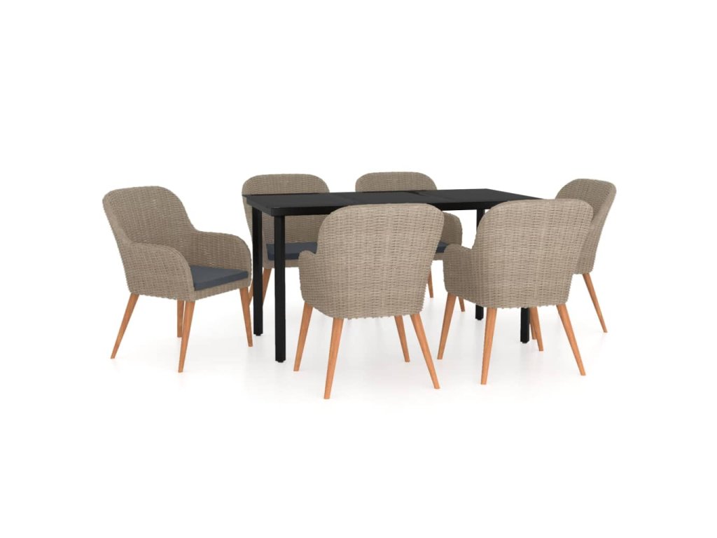 7dílný zahradní jídelní set s poduškami hnědý 3099514