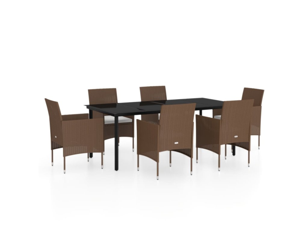 7dílný zahradní jídelní set s poduškami hnědý a černý 3099303