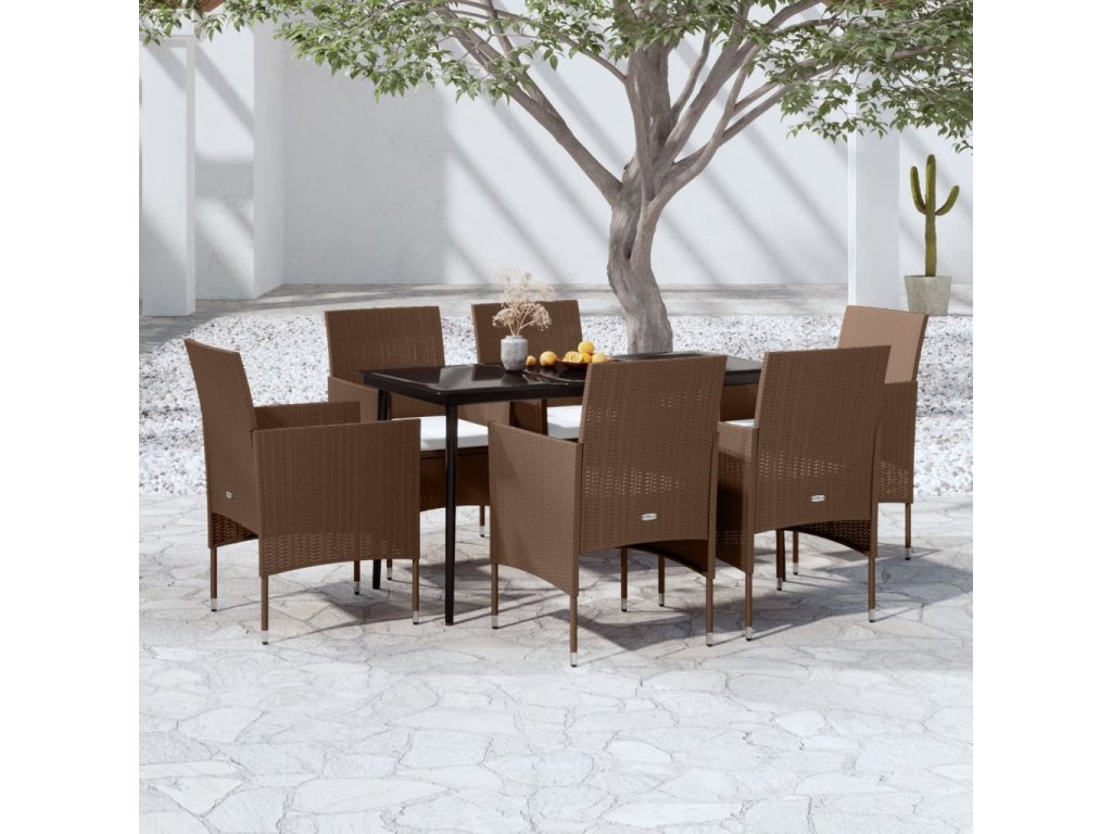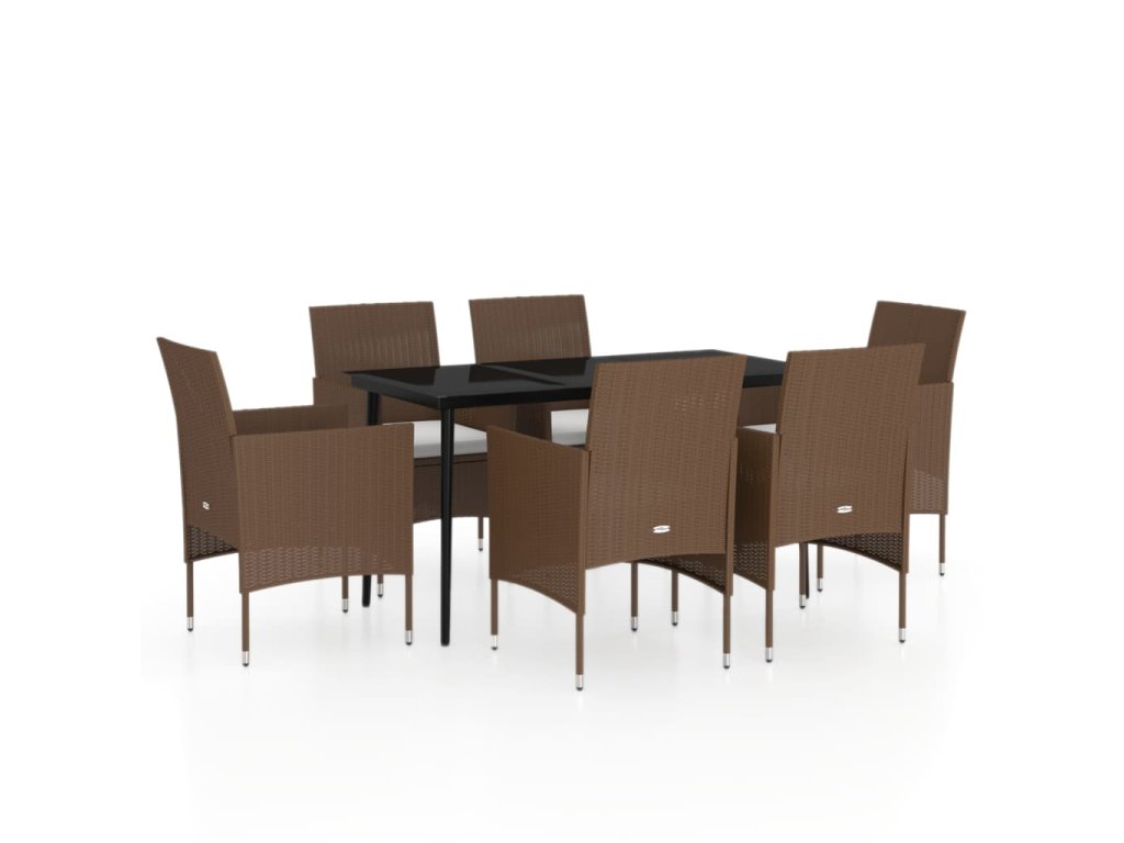 7dílný zahradní jídelní set s poduškami hnědý a černý 3099326