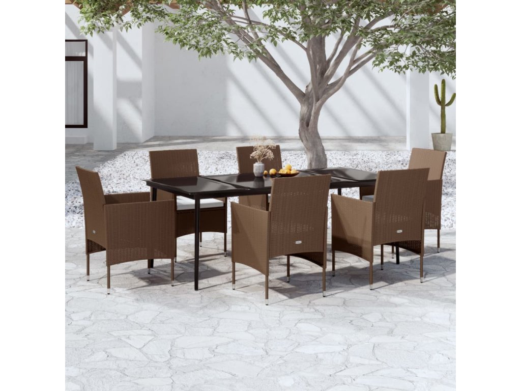 7dílný zahradní jídelní set s poduškami hnědý a černý 3099327