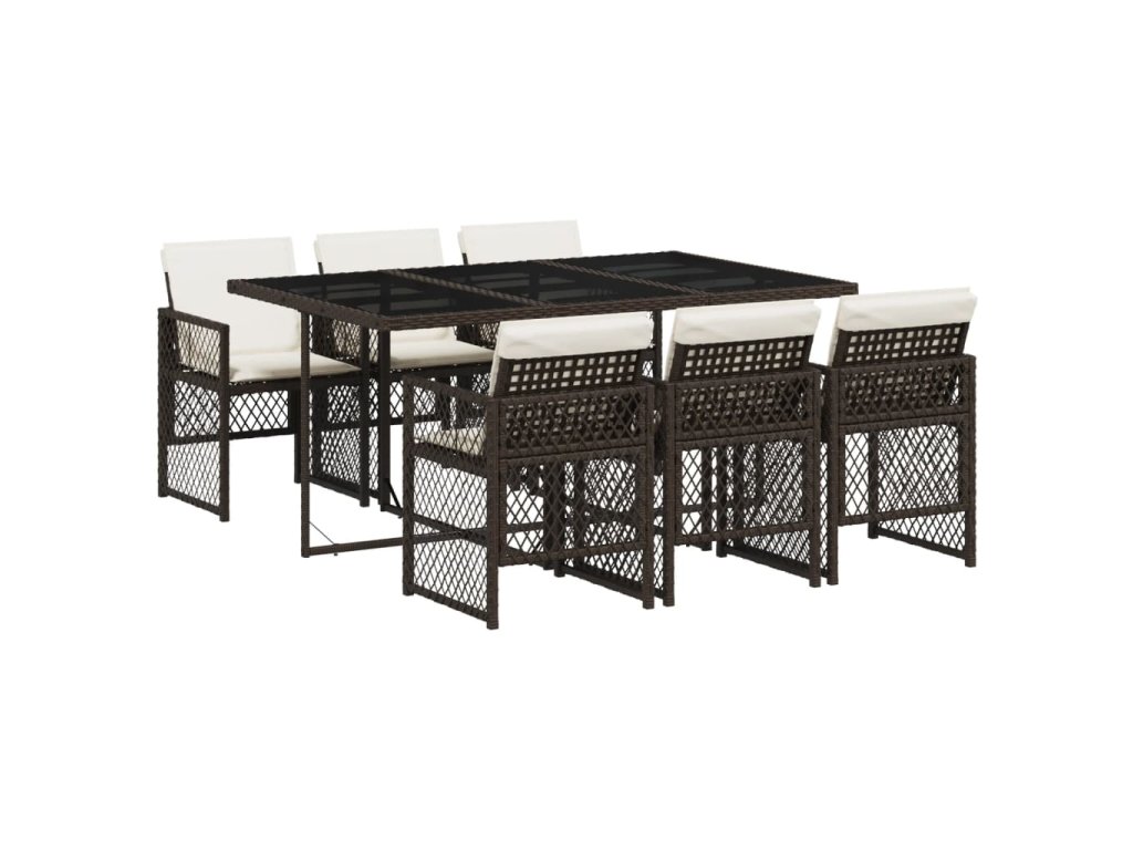 7dílný zahradní jídelní set s poduškami hnědý polyratan 3210729