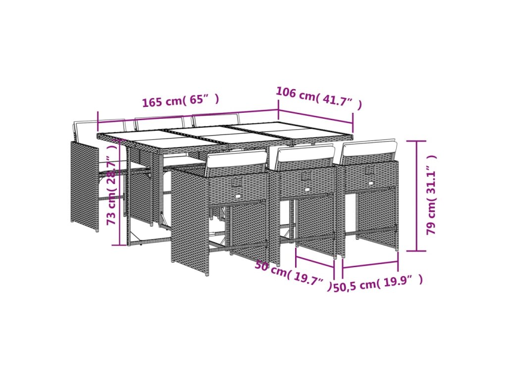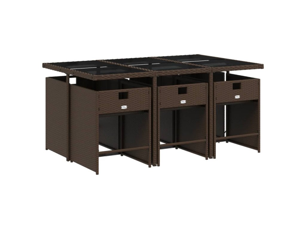 7dílný zahradní jídelní set s poduškami hnědý polyratan 3211089
