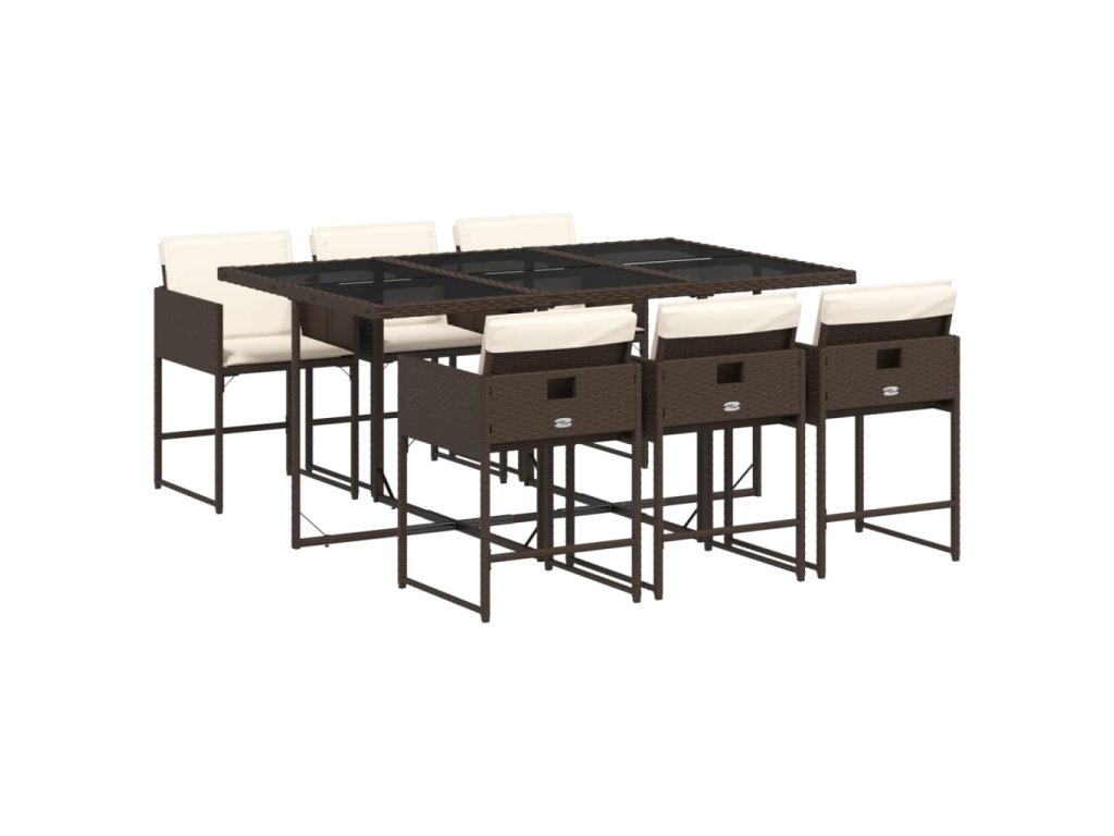 7dílný zahradní jídelní set s poduškami hnědý polyratan 3211269