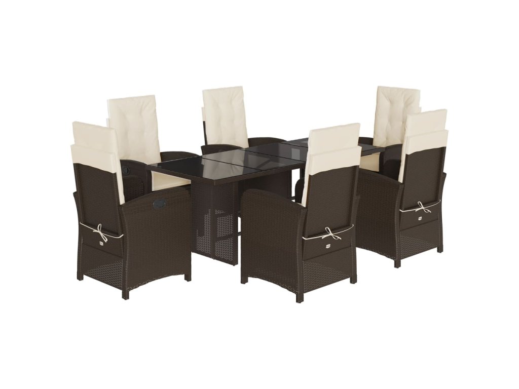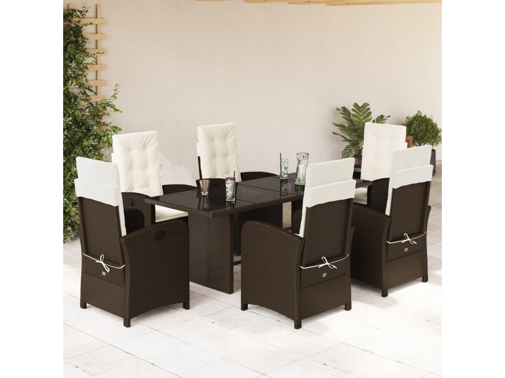 7dílný zahradní jídelní set s poduškami hnědý polyratan 3212254