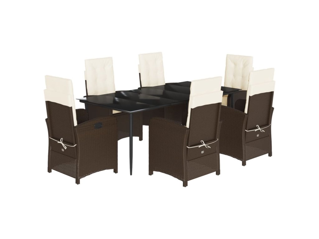 7dílný zahradní jídelní set s poduškami hnědý polyratan 3212337