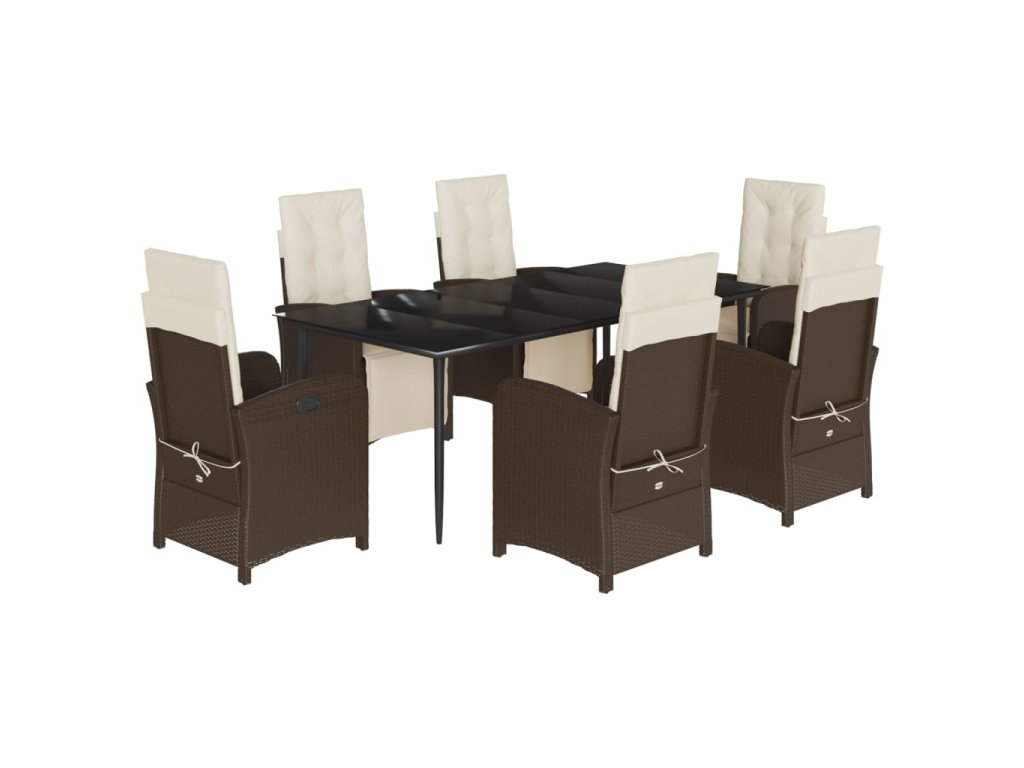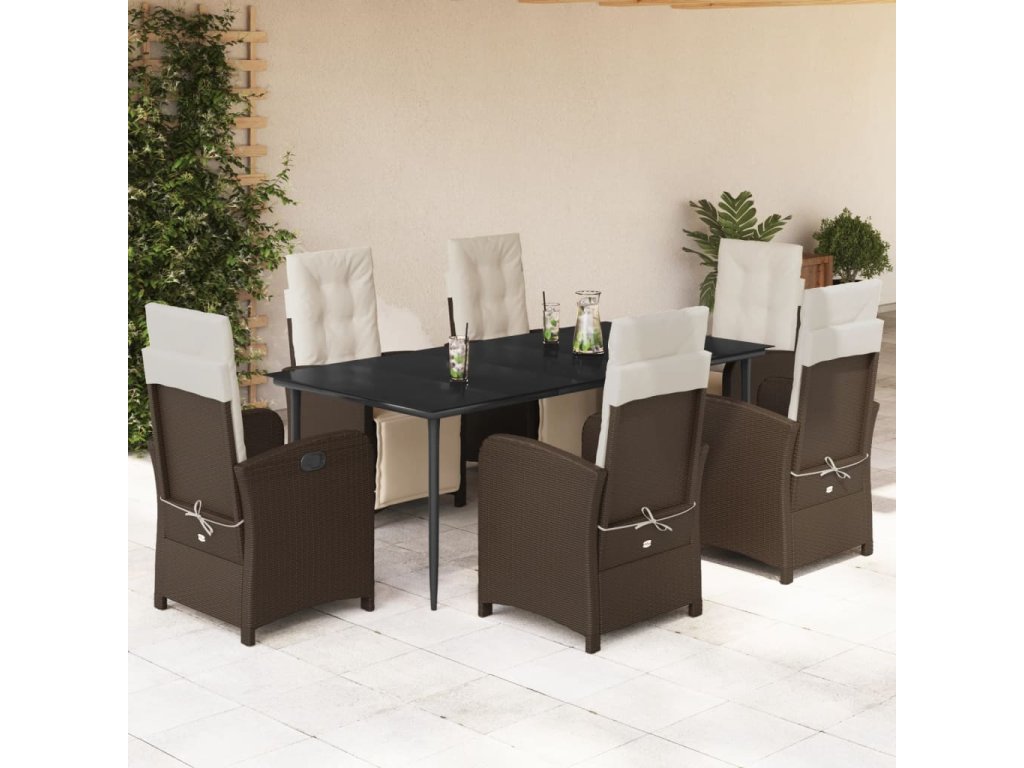 7dílný zahradní jídelní set s poduškami hnědý polyratan 3212547
