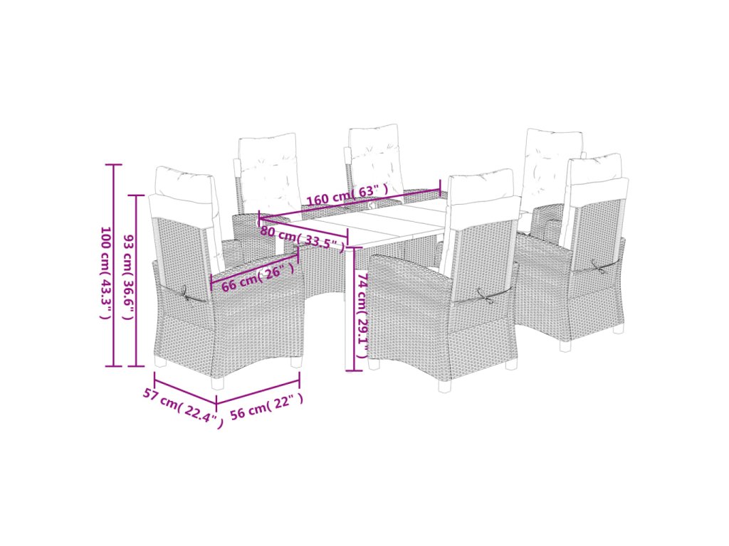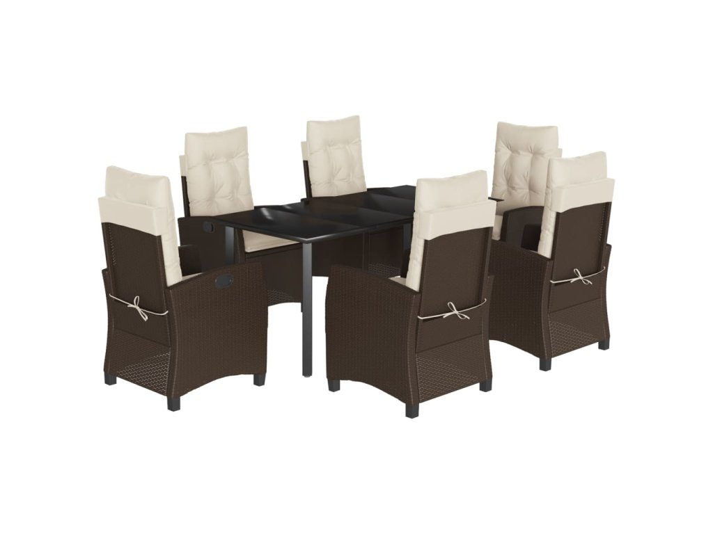 7dílný zahradní jídelní set s poduškami hnědý polyratan 3212778