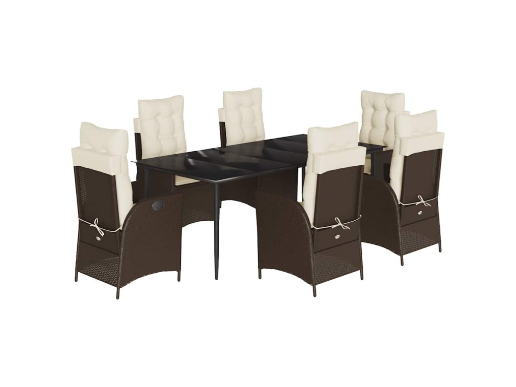7dílný zahradní jídelní set s poduškami hnědý polyratan 3213201