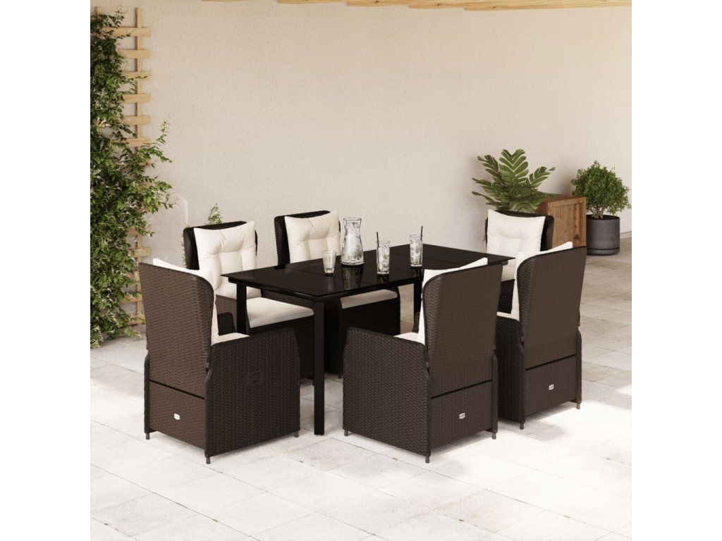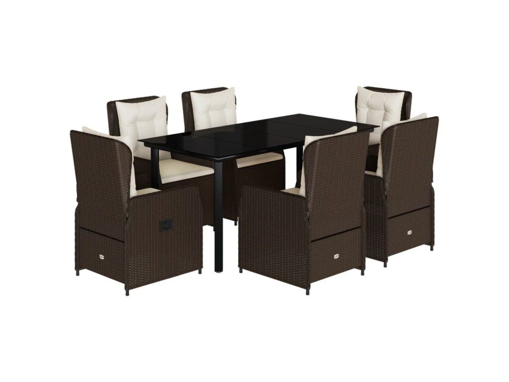 7dílný zahradní jídelní set s poduškami hnědý polyratan 3262851