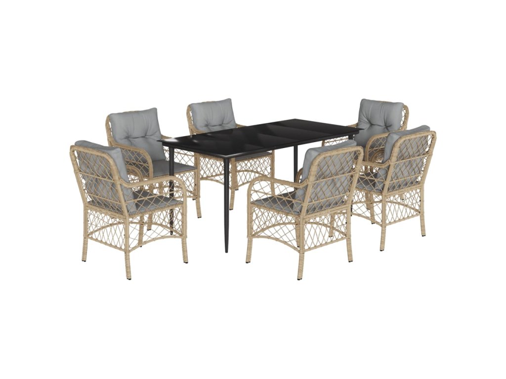 7dílný zahradní jídelní set s poduškami mix béžové polyratan 3212156