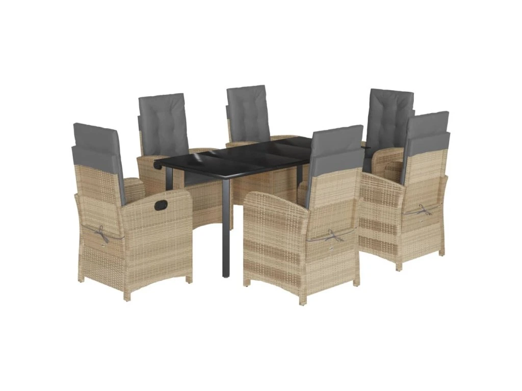 7dílný zahradní jídelní set s poduškami mix béžové polyratan 3212405