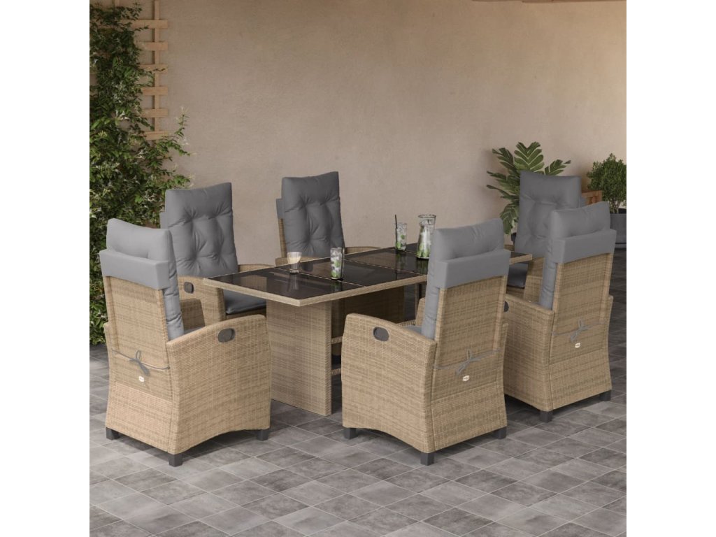 7dílný zahradní jídelní set s poduškami mix béžové polyratan 3212695