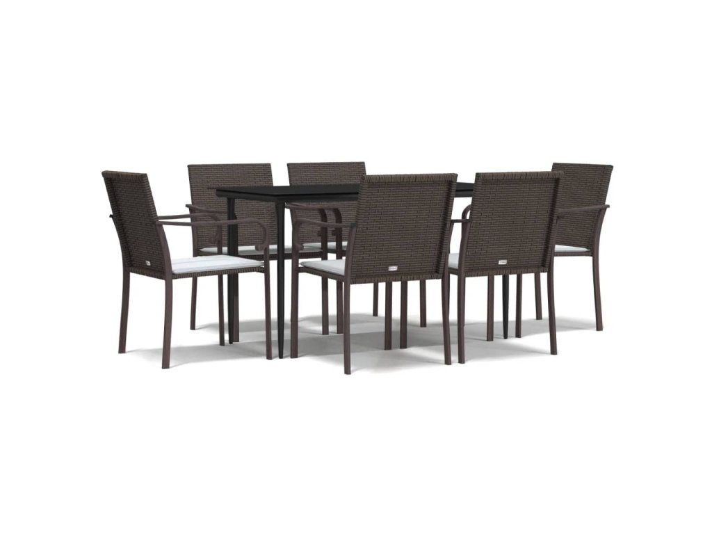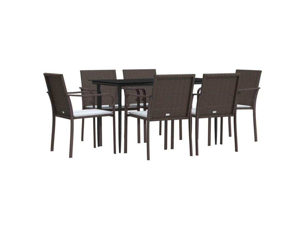 7dílný zahradní jídelní set s poduškami polyratan a ocel 3186942