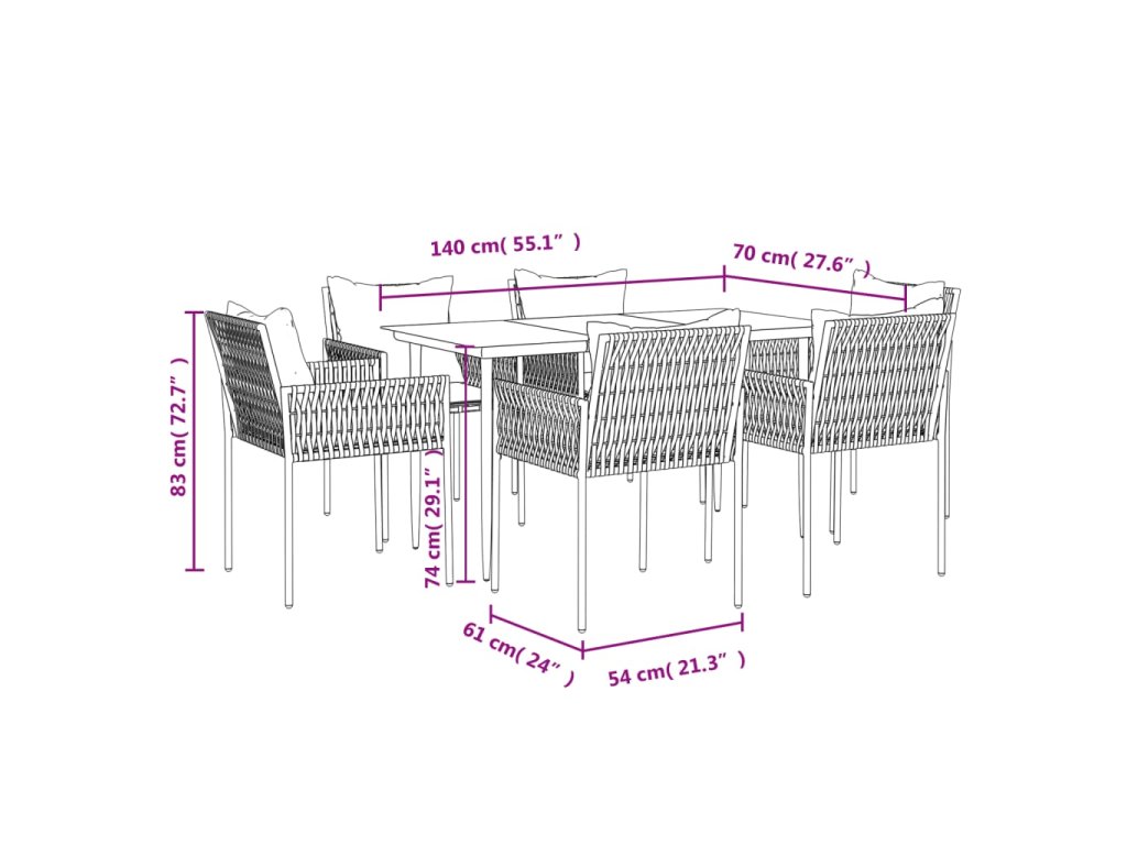 7dílný zahradní jídelní set s poduškami polyratan a ocel 3187056