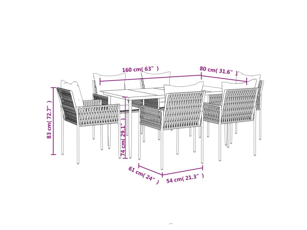 7dílný zahradní jídelní set s poduškami polyratan a ocel 3187058