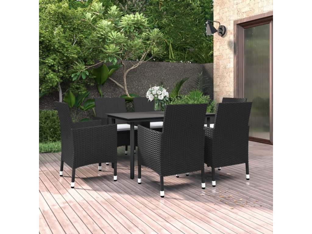 7dílný zahradní jídelní set s poduškami polyratan a sklo 3099682