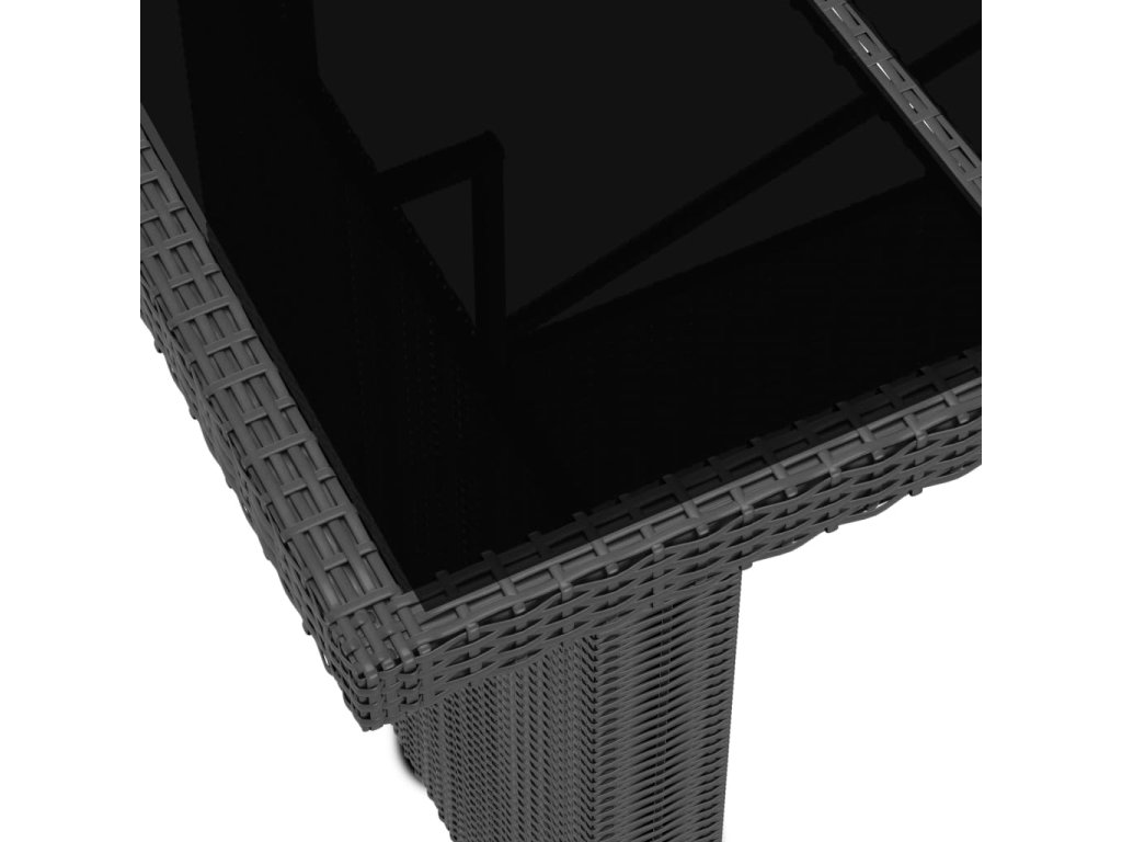 Zahradní nábytek má bytelný rám z práškově lakované oceli, který je velice stabilní a odolný. Výplet z polyratanu umožňuje snadné čištění a každodenní venkovní používání, protože má mimořádnou výdrž. Skleněnou stolní desku očistíte také bez problémů – postačí vám k tomu navlhčený hadřík. Polohovací židle vám nabídnou prvotřídní pohodlí a skvělou oporu. Sklon opěradla lze jednoduše nastavit dle vašich představ tlačítkem na boku. Tlusté a měkké podušky na sedák a opěradlo vám navíc zajistí zvýšený komfort.