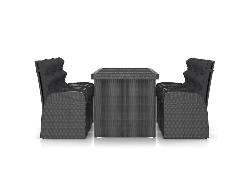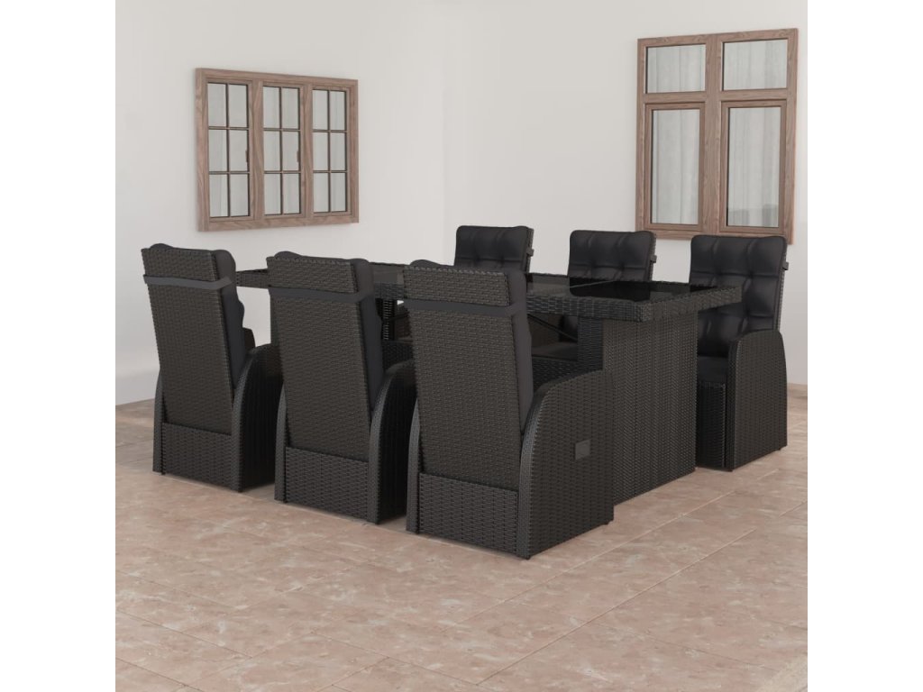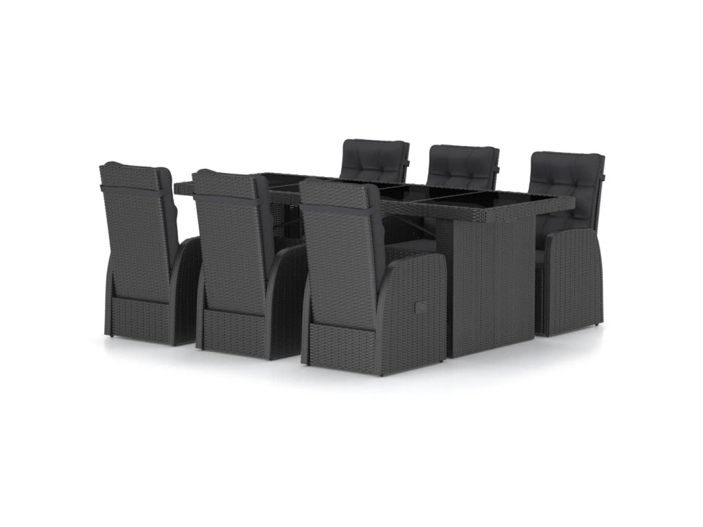 7dílný zahradní jídelní set s poduškami polyratan černý 3059347