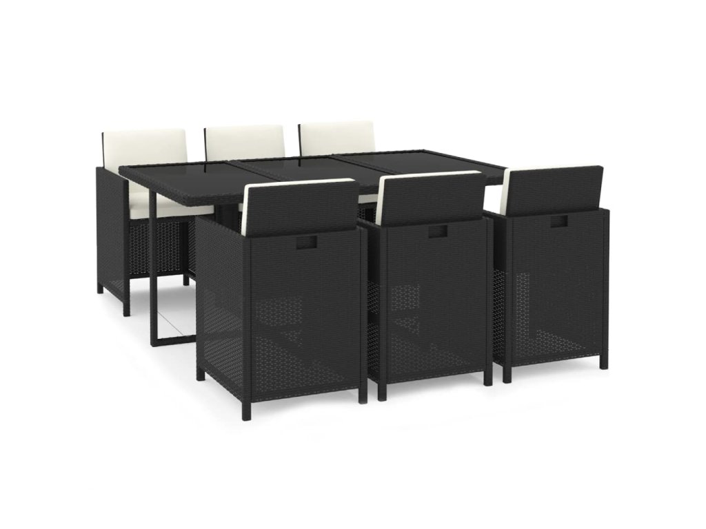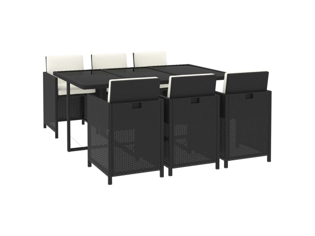 7dílný zahradní jídelní set s poduškami polyratan černý 3095530