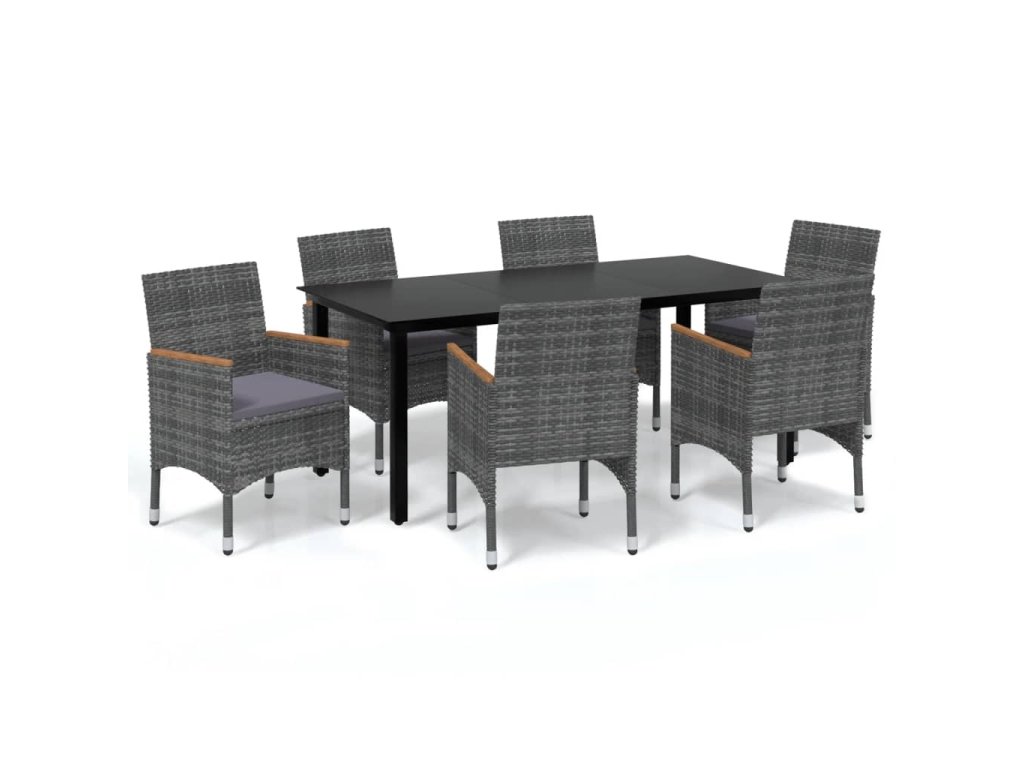 7dílný zahradní jídelní set s poduškami polyratan šedý 3095007