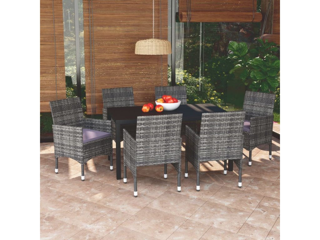 7dílný zahradní jídelní set s poduškami polyratan šedý 3095024