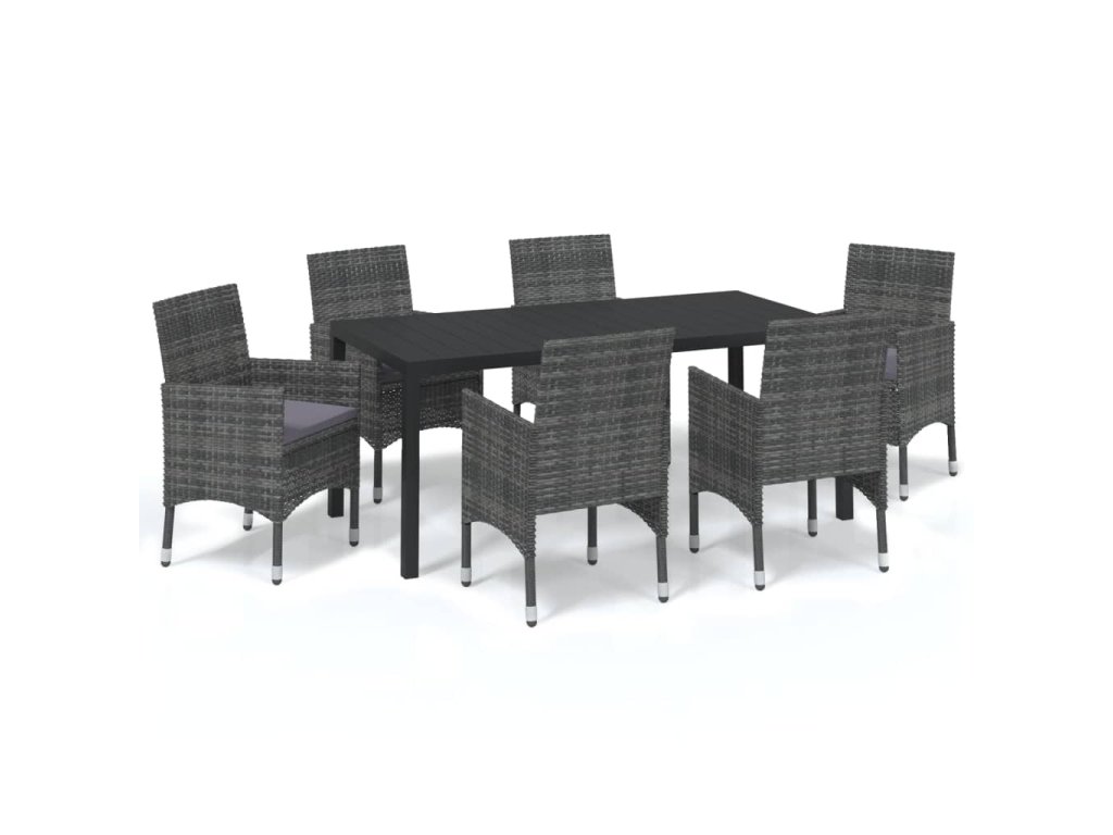 7dílný zahradní jídelní set s poduškami polyratan šedý 3095025