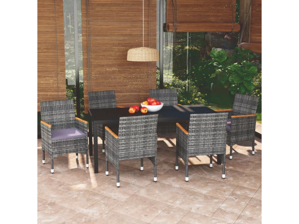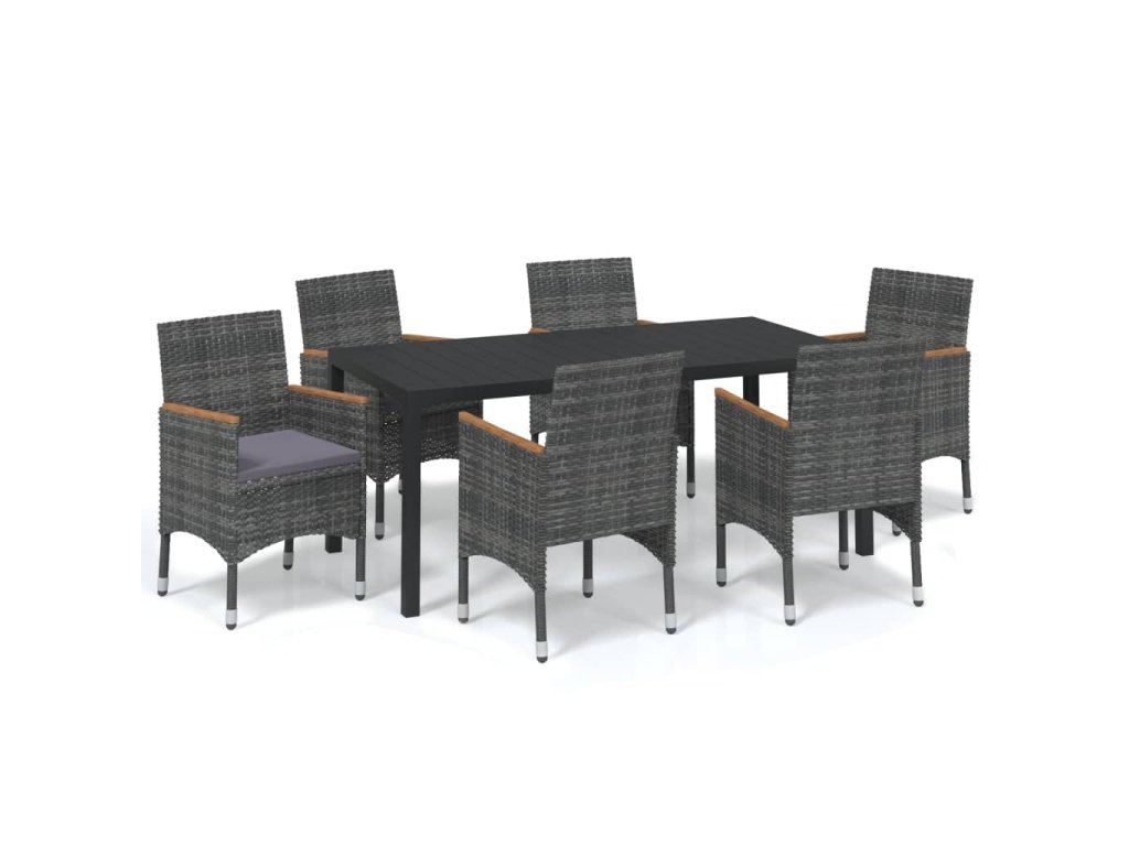 7dílný zahradní jídelní set s poduškami polyratan šedý 3095031