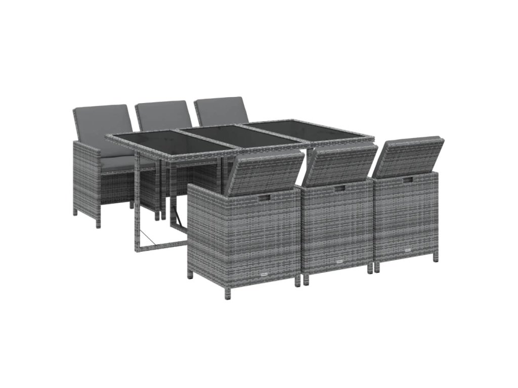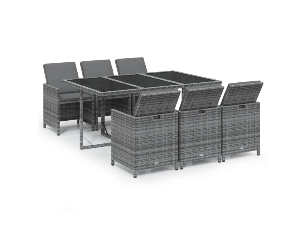 7dílný zahradní jídelní set s poduškami polyratan šedý 3095536