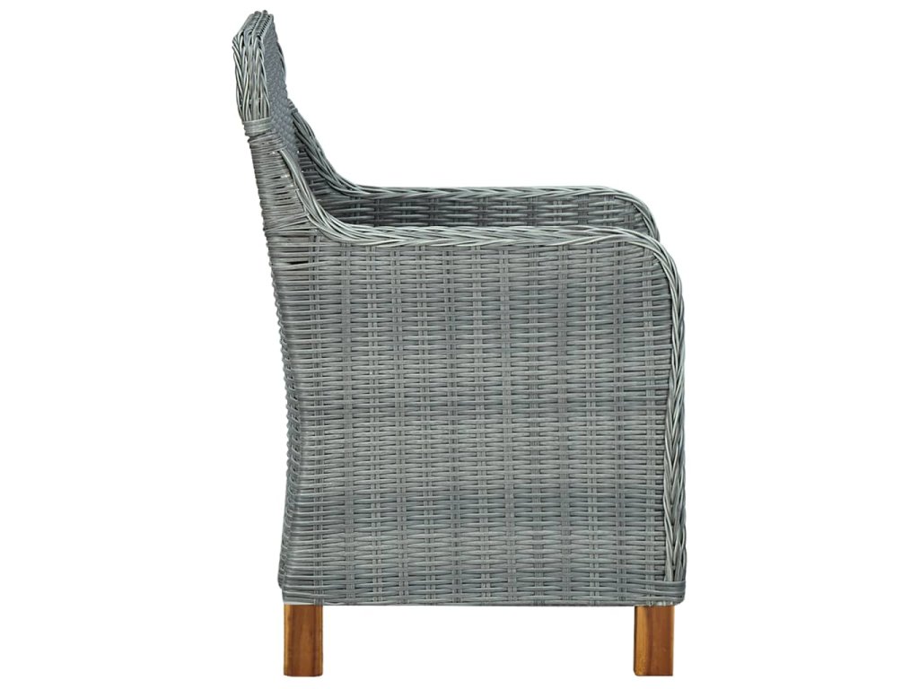 Zahradní nábytek je vyrobený z kulatého PE ratanu, který nevyžaduje téměř žádnou údržbu a snadno se čistí vlhkým hadříkem. Skvěle se proto hodí pro venkovní použití. Křesla i stůl mají rám z práškově lakované oceli, což jim zajišťuje výtečnou stabilitu a odolnost. Robustní stolní deska vám výborně poslouží k odkládání nebo vystavení nejrůznějších věcí. Hustě polstrované podušky vám při odpočinku poskytnou maximální pohodlí. Jejich potahy jsou opatřené zipem, aby se vám lépe stahovaly a praly. Nohy z masivního akáciového dřeva židlím dodávají na pevnosti a lepší rovnováze. Nábytek má lehkou konstrukci, takže ho můžete bez námahy přesouvat.