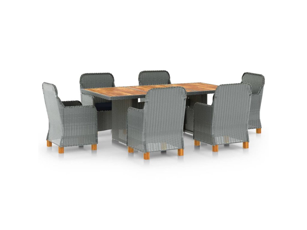 7dílný zahradní jídelní set s poduškami polyratan světle šedý 3060172