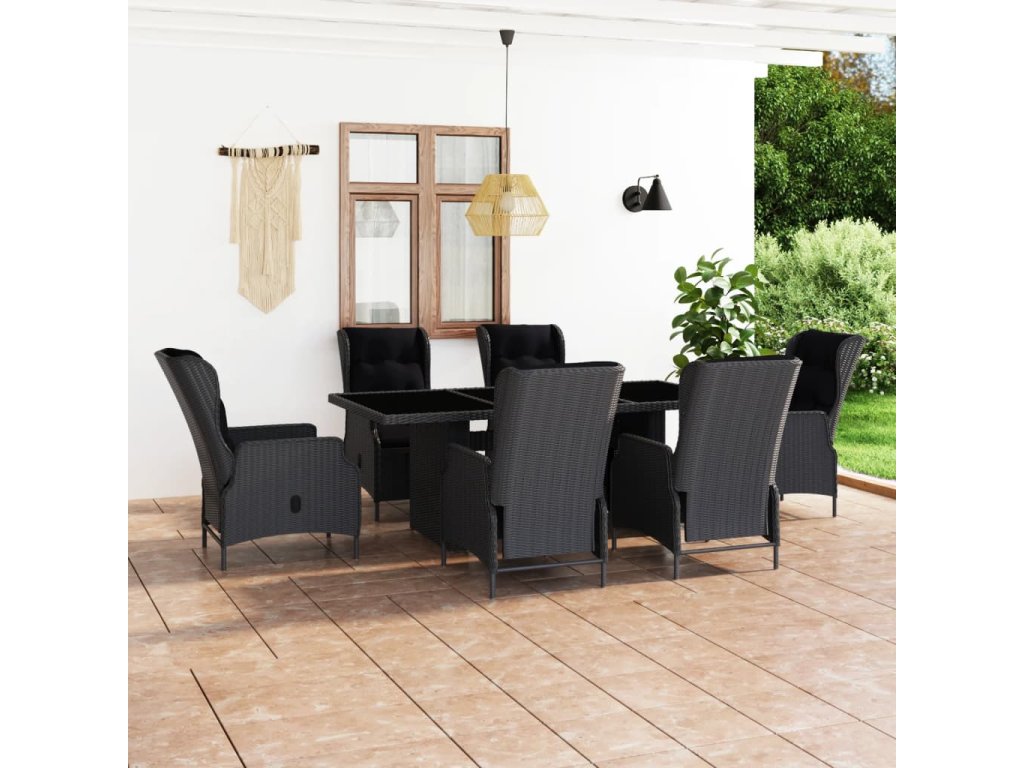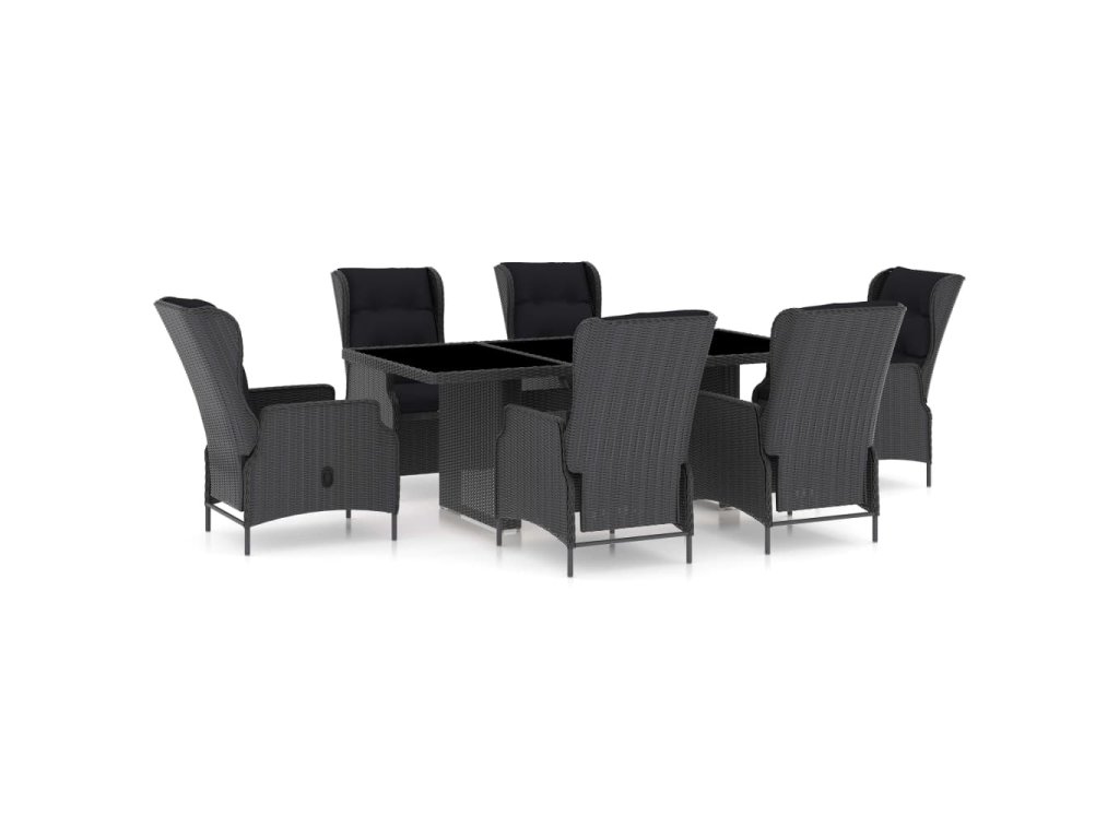 7dílný zahradní jídelní set s poduškami polyratan tmavě šedý 3060136