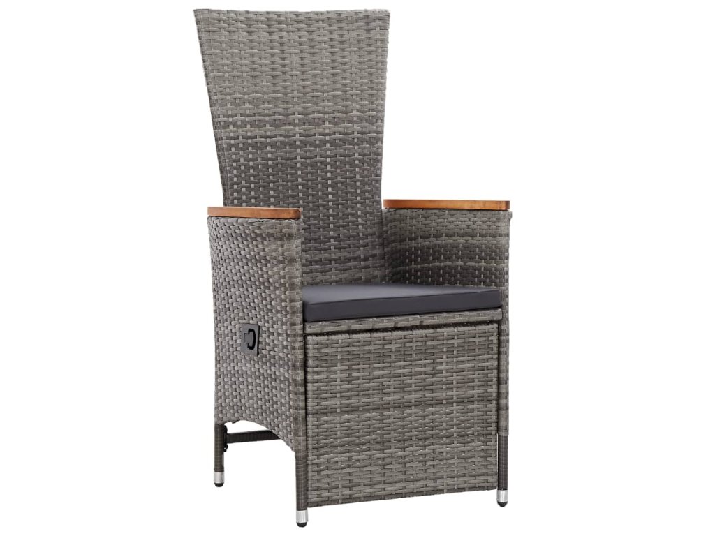 Stůl i židle mají rámy z práškově lakované oceli, jsou tedy robustní, stabilní a vhodné pro každodenní venkovní použití. Židle jsou vyrobené z voděodolného PE ratanu, takže se snadno čistí a hodně toho vydrží. Opěradlo i opěrku nohou si můžete nastavit zatažením za tlačítko na boku. Nábytek má lehkou konstrukci, lze ho tudíž bez námahy přesouvat. Husté polstrované podušky na sedák vám navíc zajistí mimořádné pohodlí. Jejich polyesterové potahy jsou nenáročné na údržbu a dají se stáhnout a vyprat. Hladká skleněná stolní deska, kterou jednoduše očistíte vlhkým hadříkem, je ideální k podávání jídla a pití nebo k vystavení různých dekorativních předmětů.