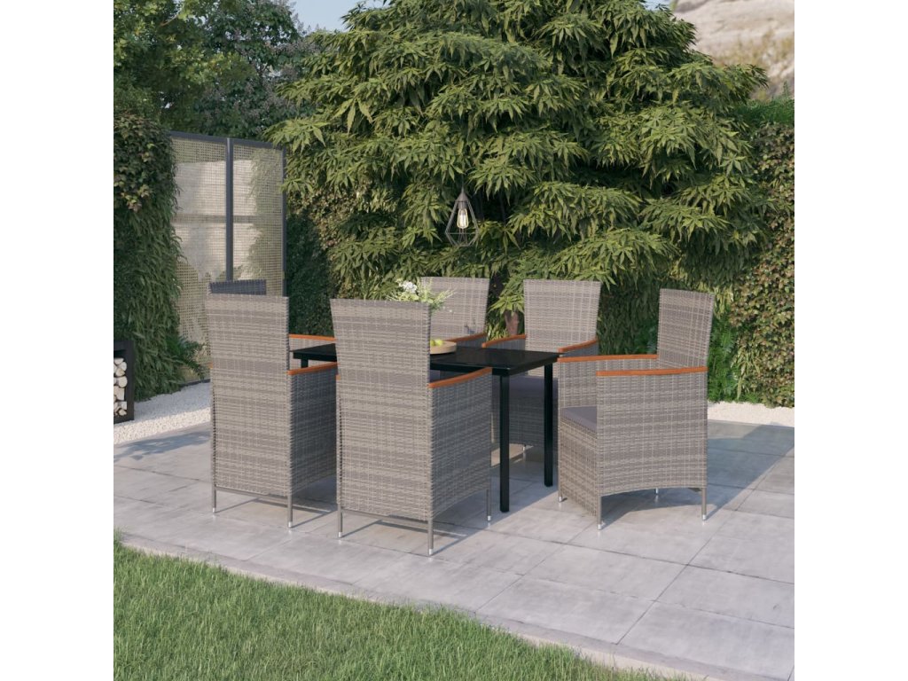 7dílný zahradní jídelní set s poduškami šedý 3099463