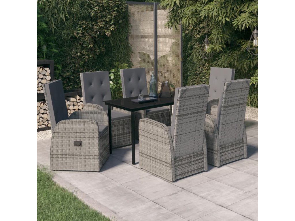 7dílný zahradní jídelní set s poduškami šedý 3099476