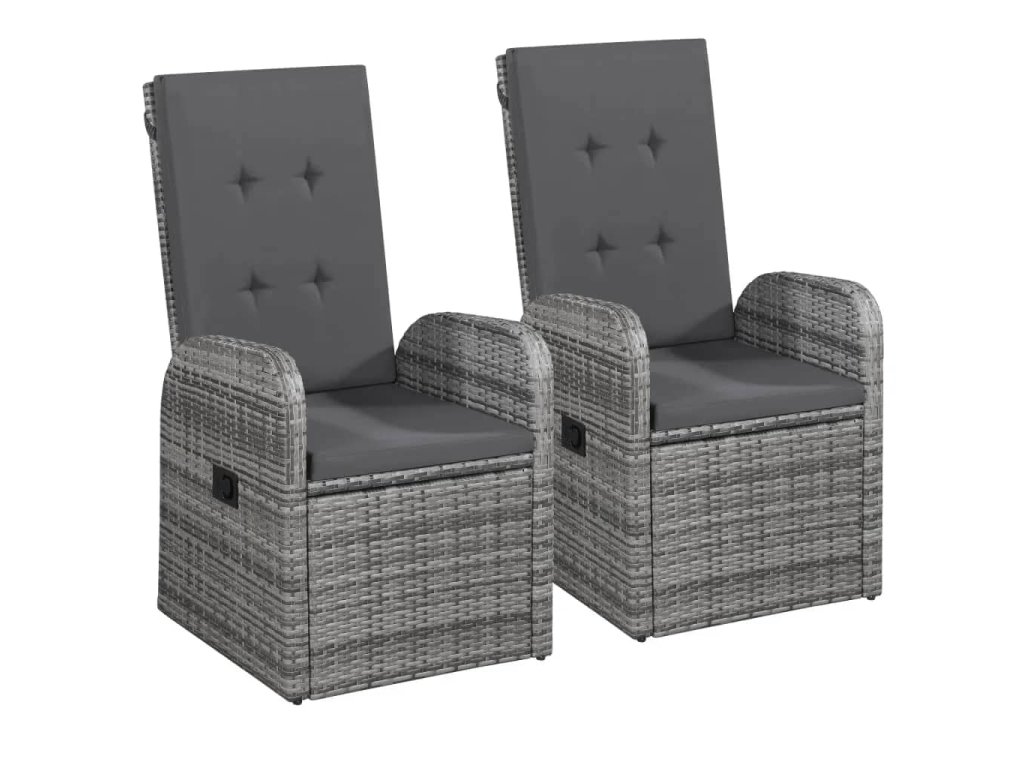 Stůl i židle mají rámy z práškově lakované oceli, jsou tedy robustní, stabilní a vhodné pro každodenní venkovní použití. Židle jsou vyrobené z voděodolného PE ratanu, takže se snadno čistí a hodně toho vydrží. Opěradlo i opěrku nohou si můžete nastavit zatažením za tlačítko na boku. Nábytek má lehkou konstrukci, lze ho tudíž bez námahy přesouvat. Husté polstrované podušky na sedák vám navíc zajistí mimořádné pohodlí. Jejich polyesterové potahy jsou nenáročné na údržbu a dají se stáhnout a vyprat. Hladká skleněná stolní deska, kterou jednoduše očistíte vlhkým hadříkem, je ideální k podávání jídla a pití nebo k vystavení různých dekorativních předmětů.
