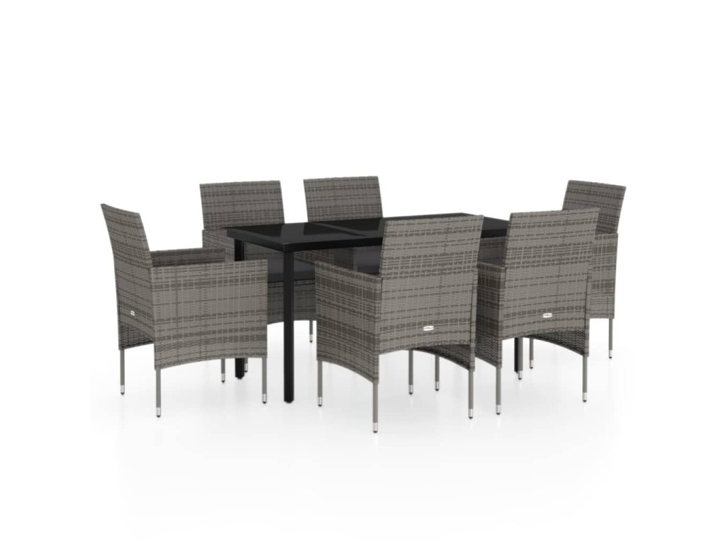 7dílný zahradní jídelní set s poduškami šedý a černý 3099290