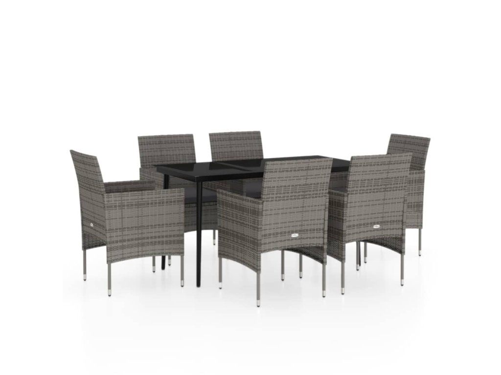 7dílný zahradní jídelní set s poduškami šedý a černý 3099314