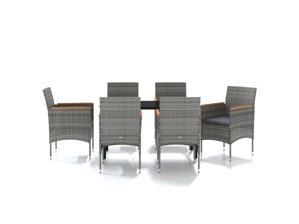 7dílný zahradní jídelní set s poduškami šedý a černý 3099338