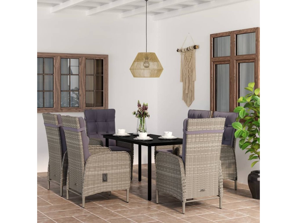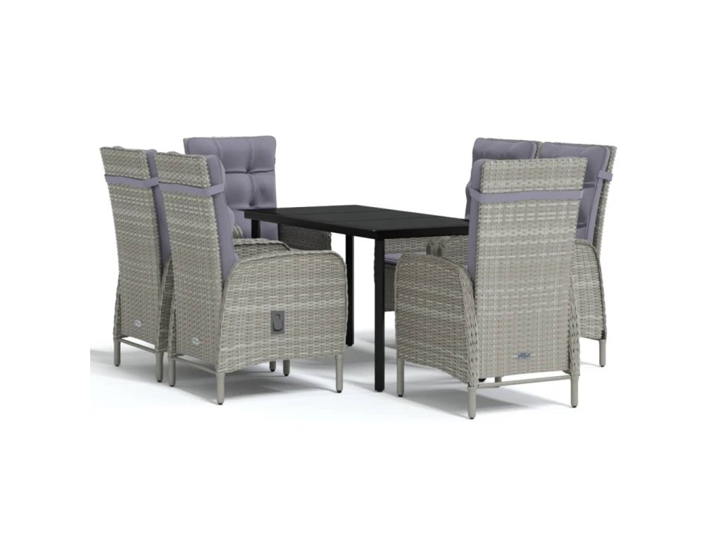 7dílný zahradní jídelní set s poduškami šedý a černý 3099362