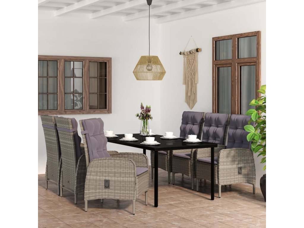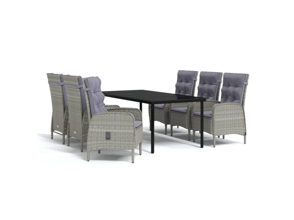 7dílný zahradní jídelní set s poduškami šedý a černý 3099363