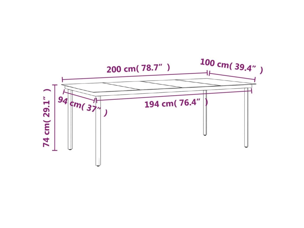 - Rozměry stolu: 200 x 100 x 74 cm (D x Š x V)
